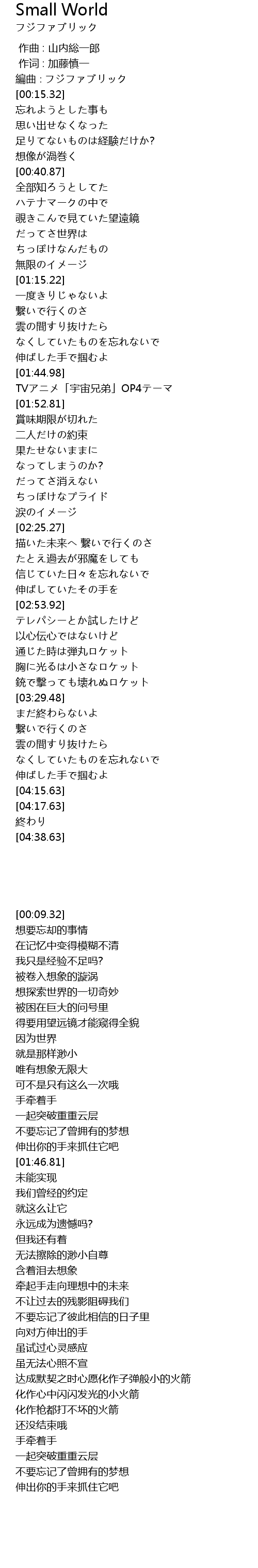| [01:46.81] | TVアニメ「宇宙兄弟」OP4テーマ |