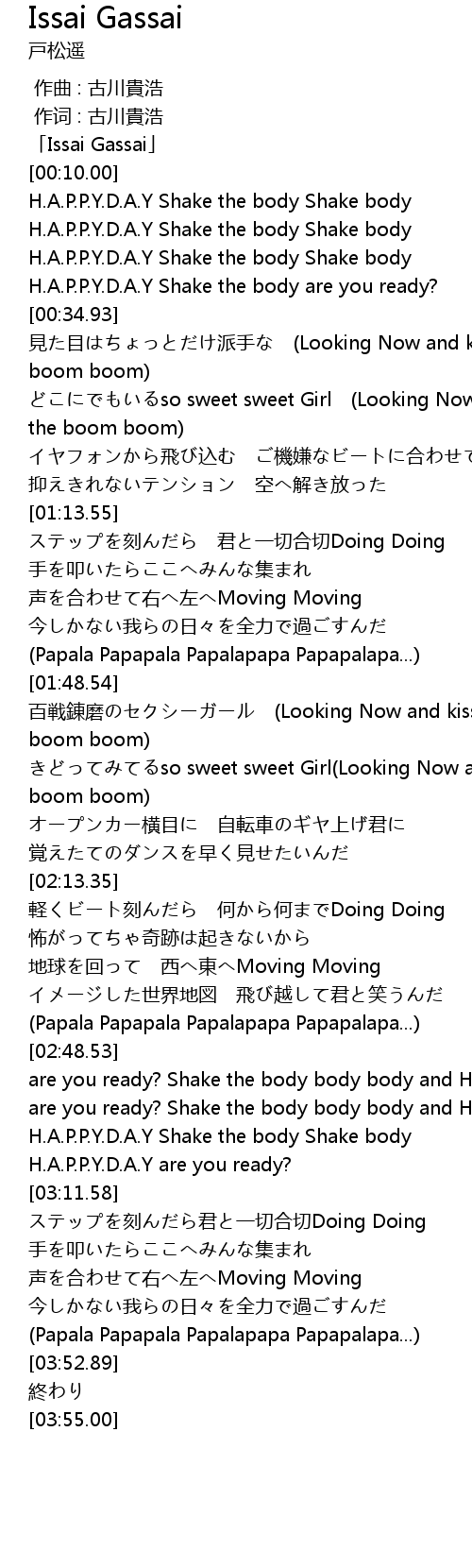 | [03:39.05] | (Papala Papapala Papalapapa Papapalapa...) |