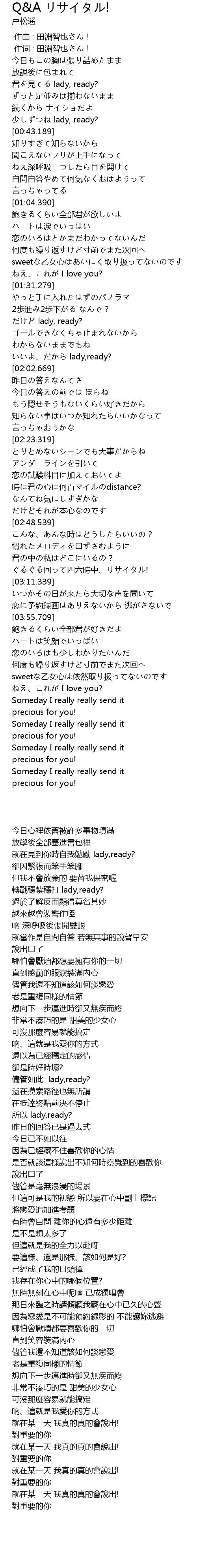| [00:01.00] | 作词 : 田淵智也さん! |