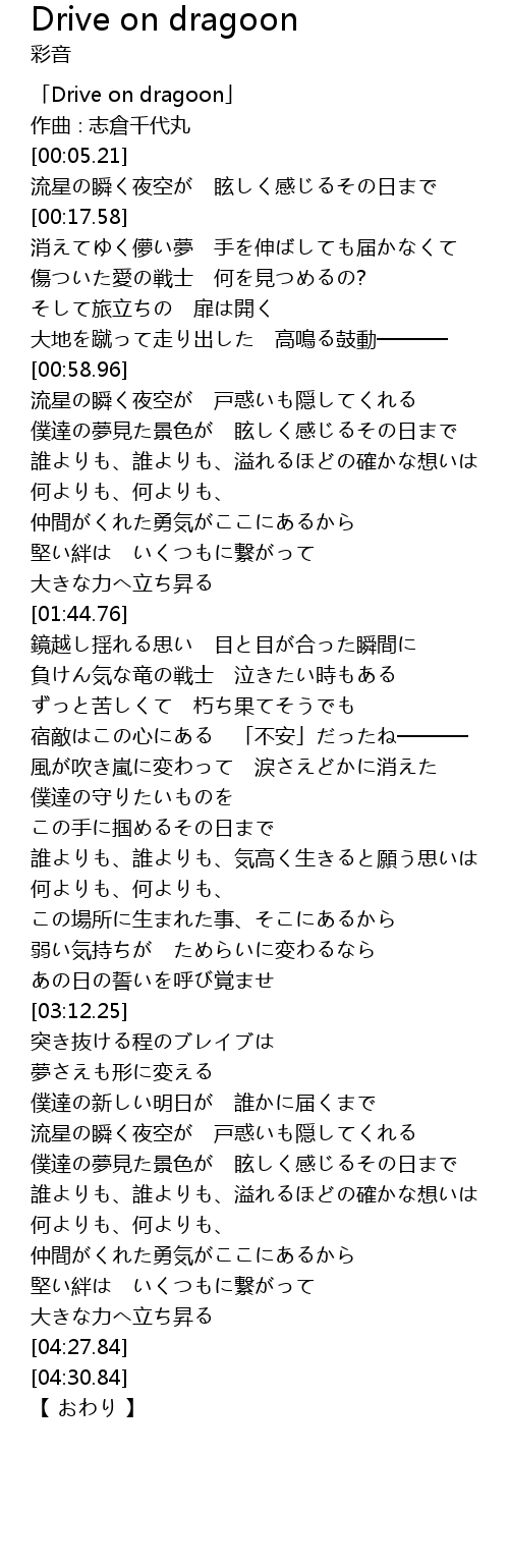 | [02:05.16] | 負けん気な竜の戦士 泣きたい時もある |