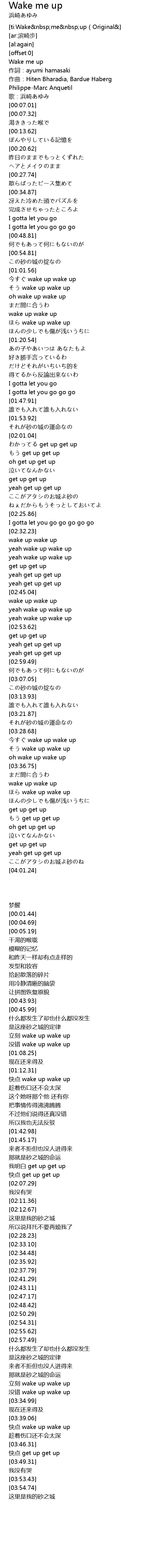 | [00:01.44] | zuo ci: ayumi hamasaki |
