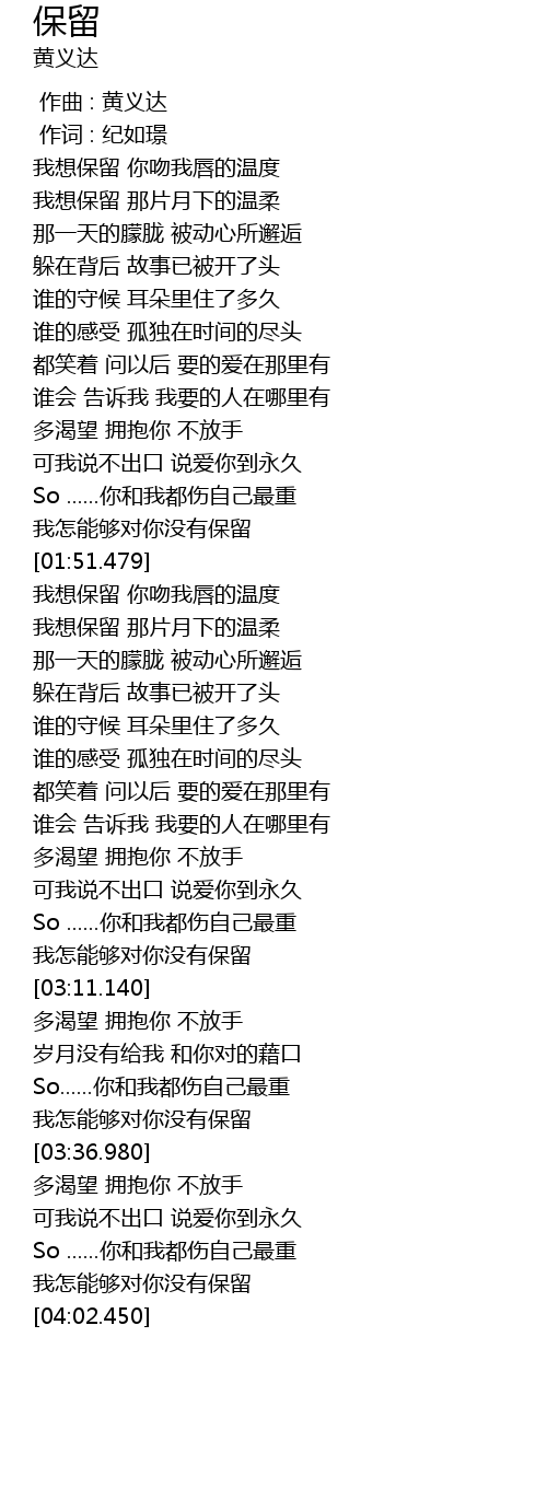 | [03:31.720] | 我怎能够对你没有保留 |