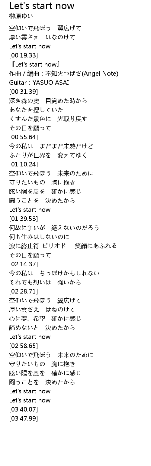 | [00:21.39] | 『Let's start now』 |