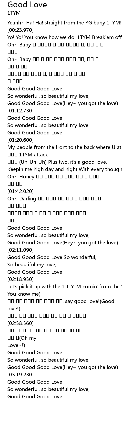 | [01:08.430] | Good Good Good Love Hey you got the love |