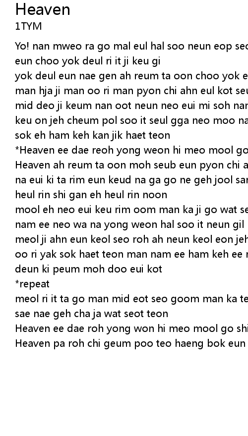 *Heaven ee dae reoh yong weon hi meo mool go ship eo |