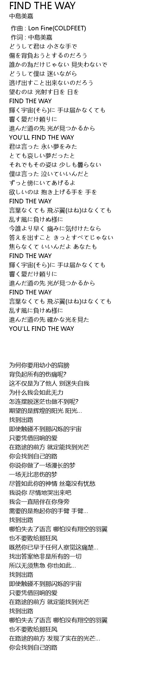 | [01:53.000] | YOU'LL FIND THE WAY |