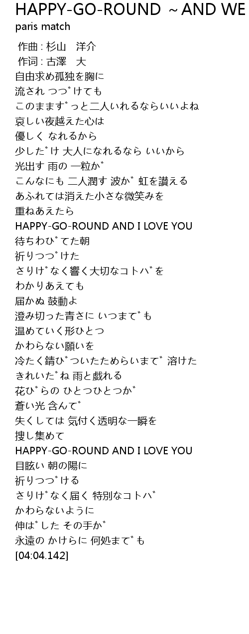 | [01:38.129] | HAPPY-GO-ROUND AND I LOVE YOU |
