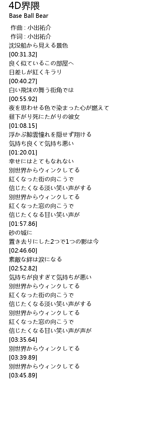 | [00:01.00] | 作词 : 小出祐介 |