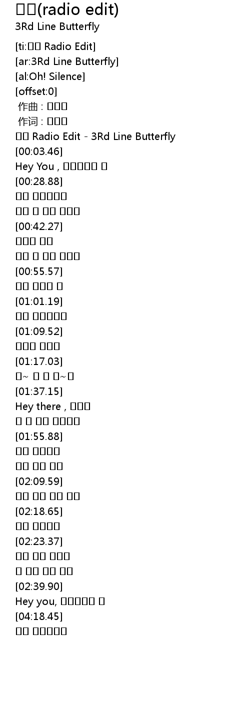 | [00:00.75] | Radio Edit 3Rd Line Butterfly |