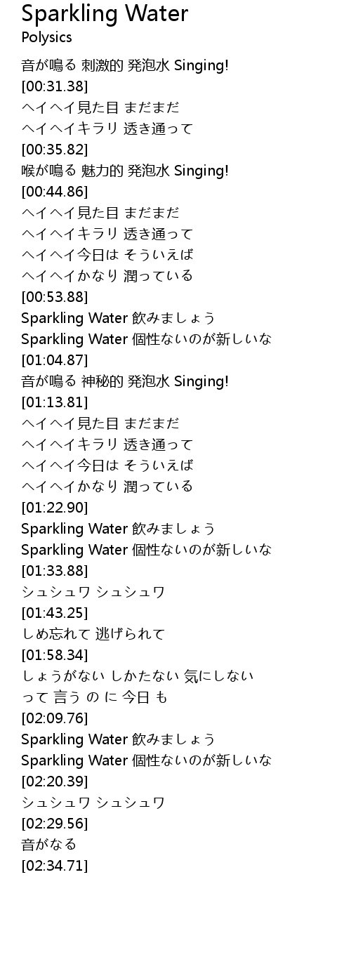 | [02:15.80] | Sparkling Water 個性ないのが新しいな |