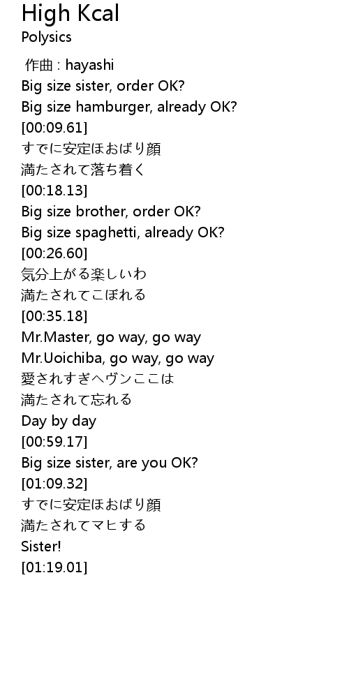 | [01:05.34] | Big size sister, are you OK? |
