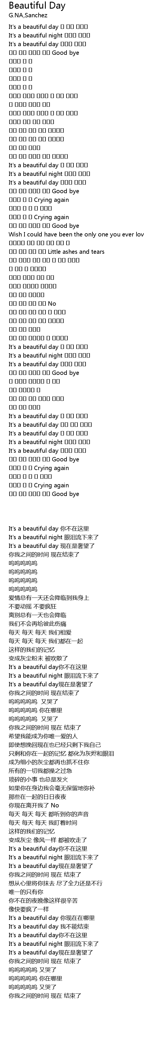| [00:00.000] | It's a beautiful day 넌 여기 없는데 |