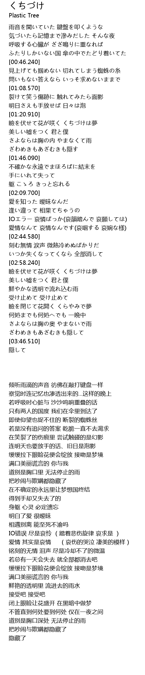 | [02:45.370] | 刻む無情 涙声 微熱冷めぬばかりだ |
