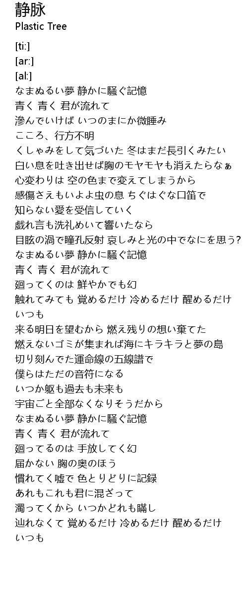 | [00:05.01] | なまぬるい夢 静かに騒ぐ記憶 |
