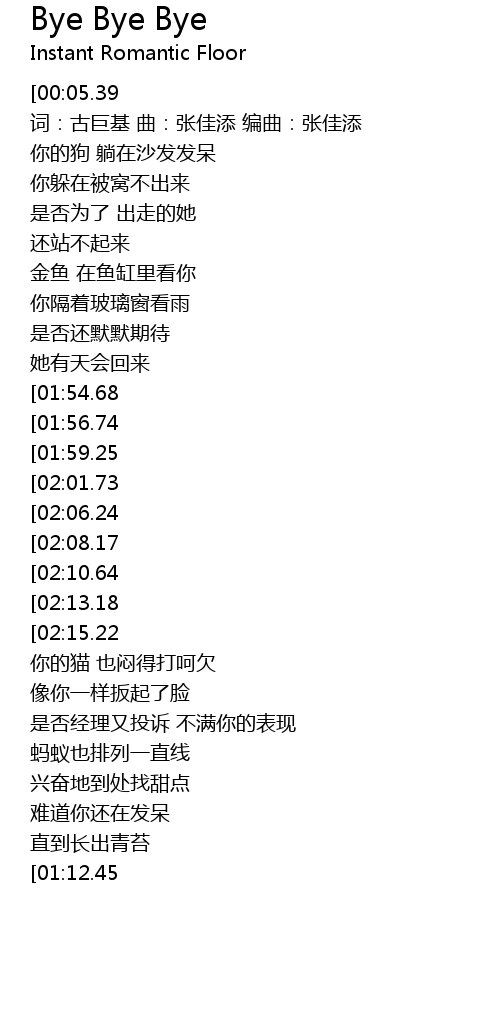 | [02:28.73][01:54.68][00:45.70] | Come on say Bye Bye Bye |