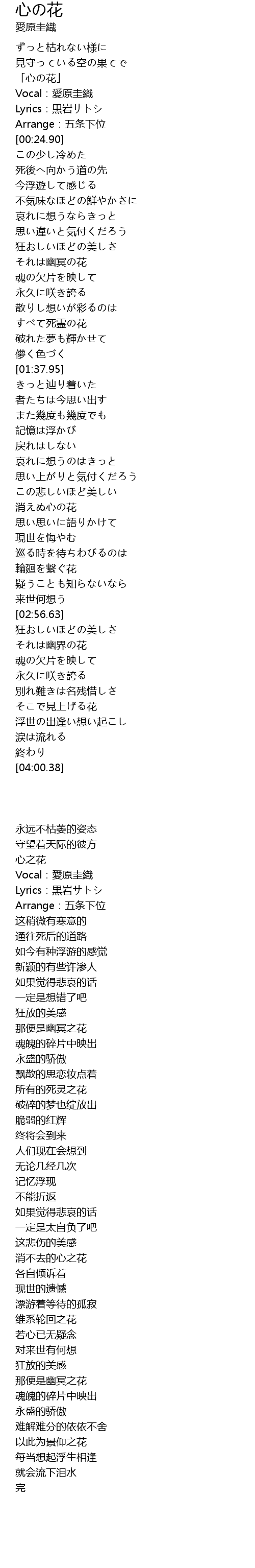 「心の花」 |