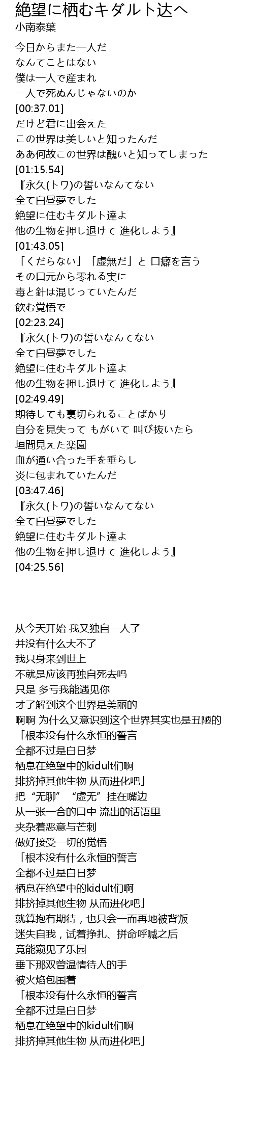 | [04:05.89] | 絶望に住むキダルト達よ |