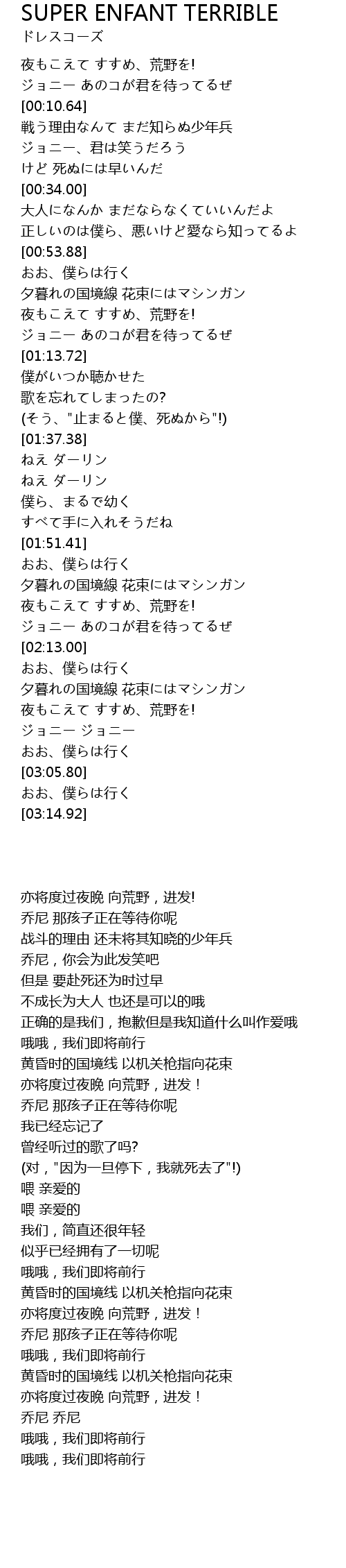 | [01:55.14] | 夕暮れの国境線 花束にはマシンガン |