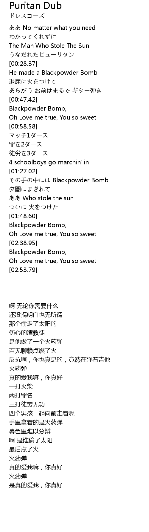 | [00:49.38] | Blackpowder Bomb, |