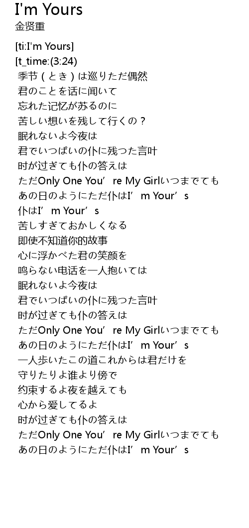 | [00:01.560][t_time:(3:24)] | 金贤重 - I’m Yours |