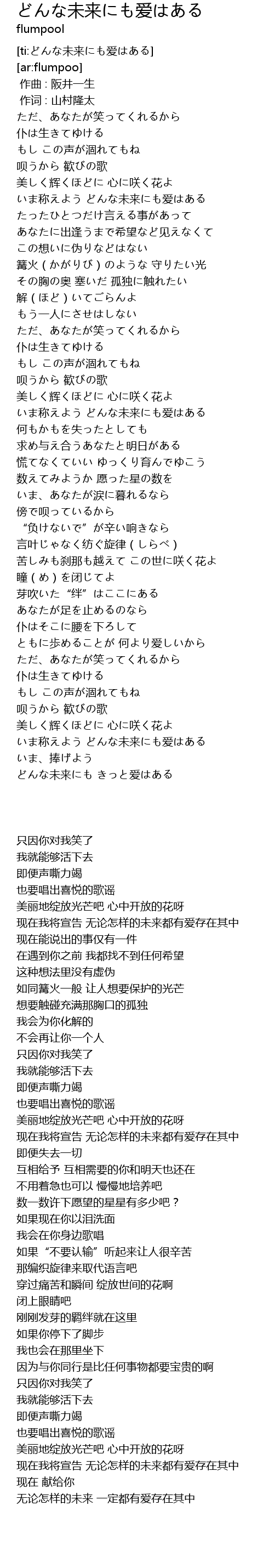 | [04:31.283] | どんな未来にも きっと爱はある |