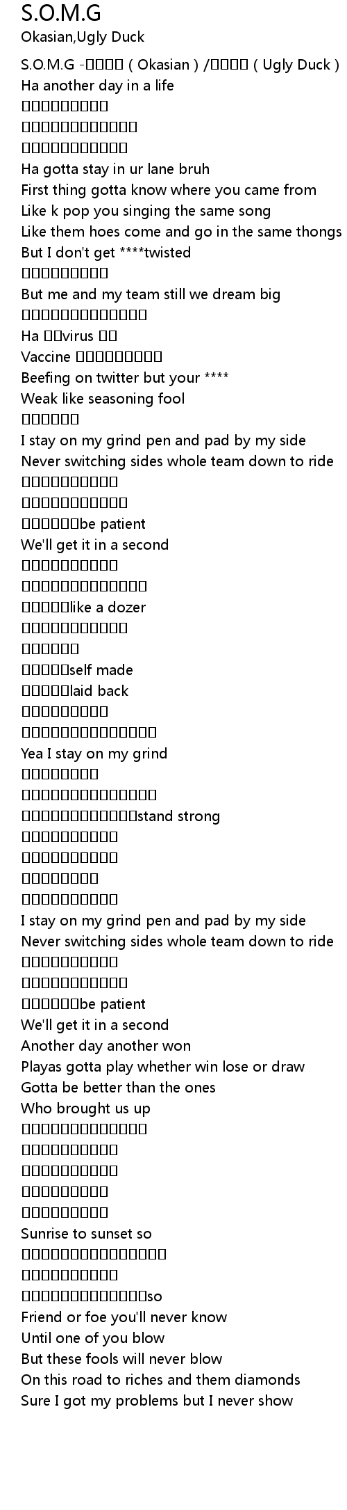 | [00:00.431] | S. O. M. G Okasian Ugly Duck |