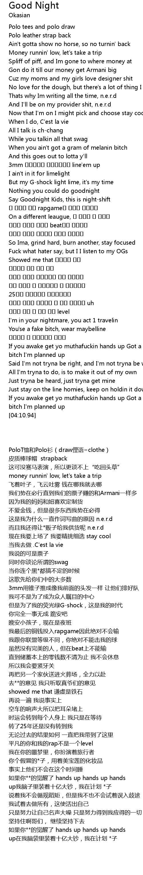 | [00:35.16] | No love for the dough, but there' s a lot of thing I gotta get |