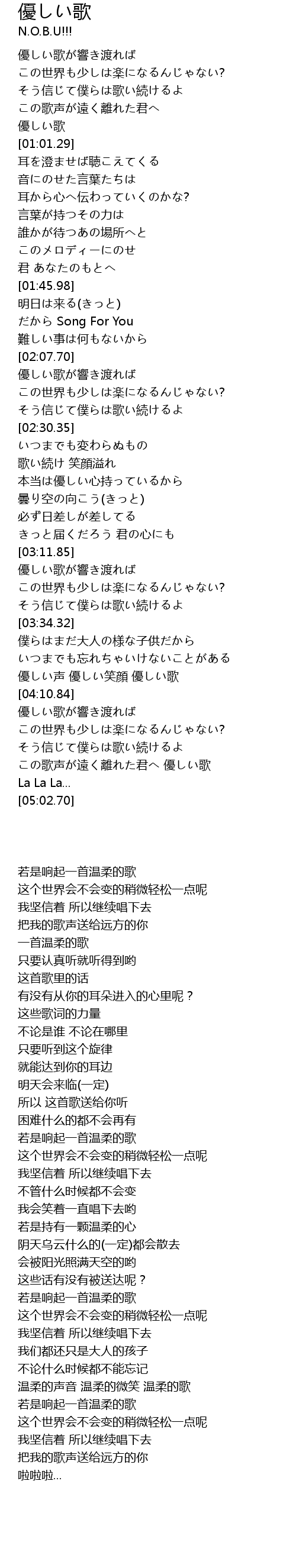 | [00:52.05] | 優しい歌 |