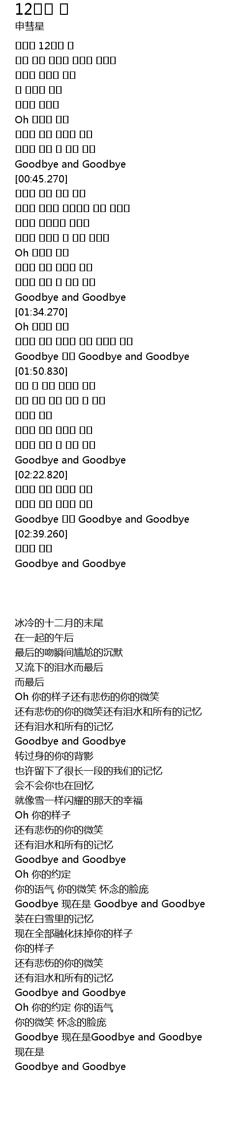 | [02:33.850] | Goodbye 이젠 Goodbye and Goodbye |