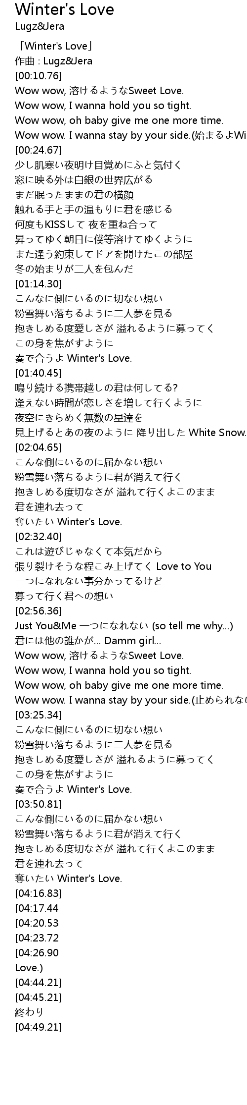 | [03:20.65] | Wow wow. I wanna stay by your side. zhǐ Winter' s Love. |