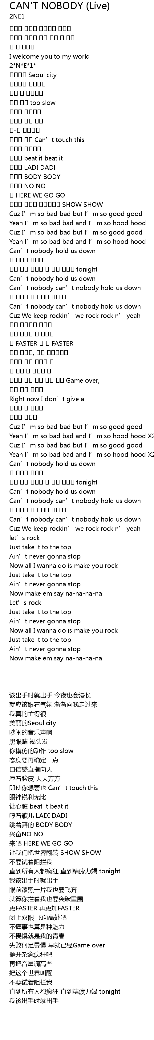 | [00:13.020] | 2 N E 1 |