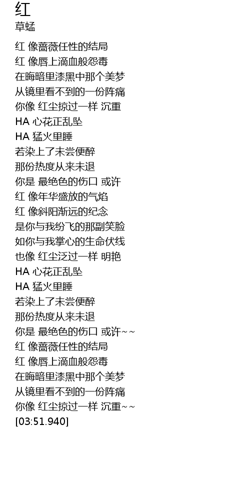 | [01:47.999] | 红 像年华盛放的气焰 |