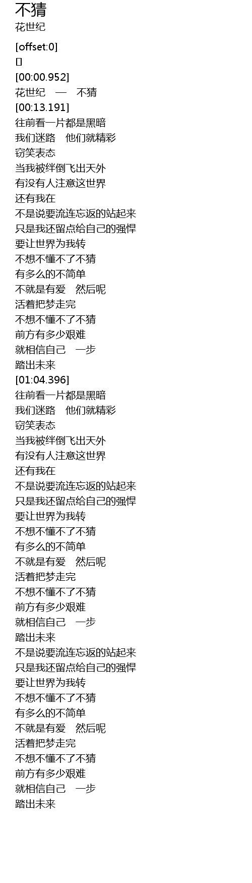 | [02:37.71] | bù xiǎng bù dǒng bù liǎo bù cāi |