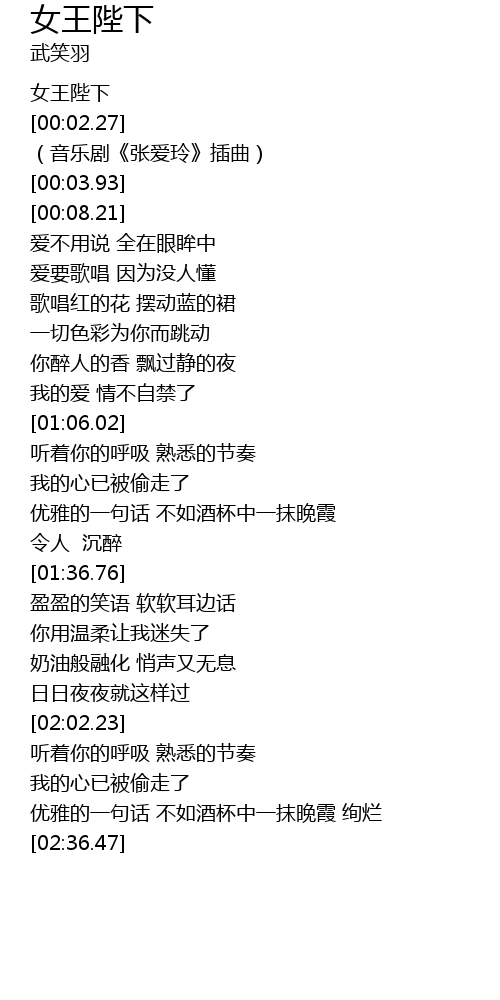 | [00:03.05] | (音乐剧《张爱玲》插曲) |