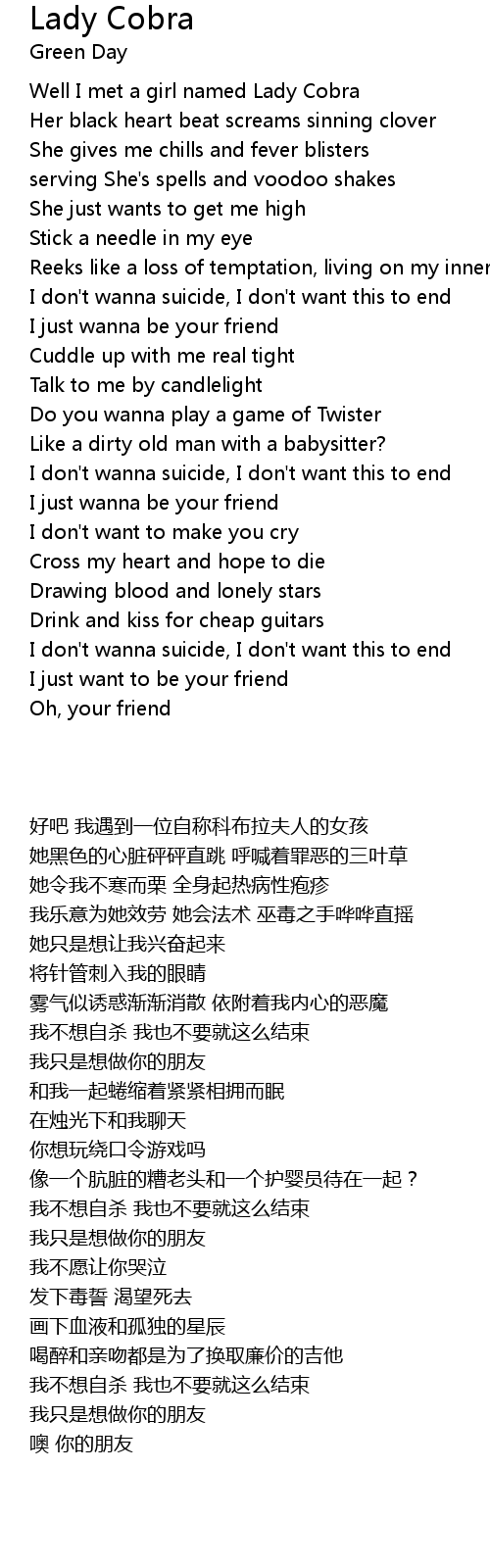 | [01:44.890] | I don't wanna suicide, I don't want this to end |
