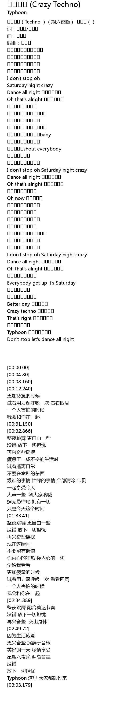 | [00:00.00] | 토요일밤(Techno )(期六夜晚)-타이푼() |