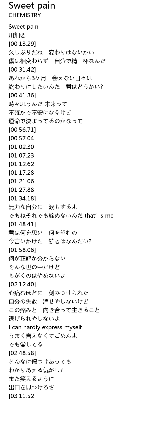 | [03:43.13][01:27.88] | wo sweet pain |