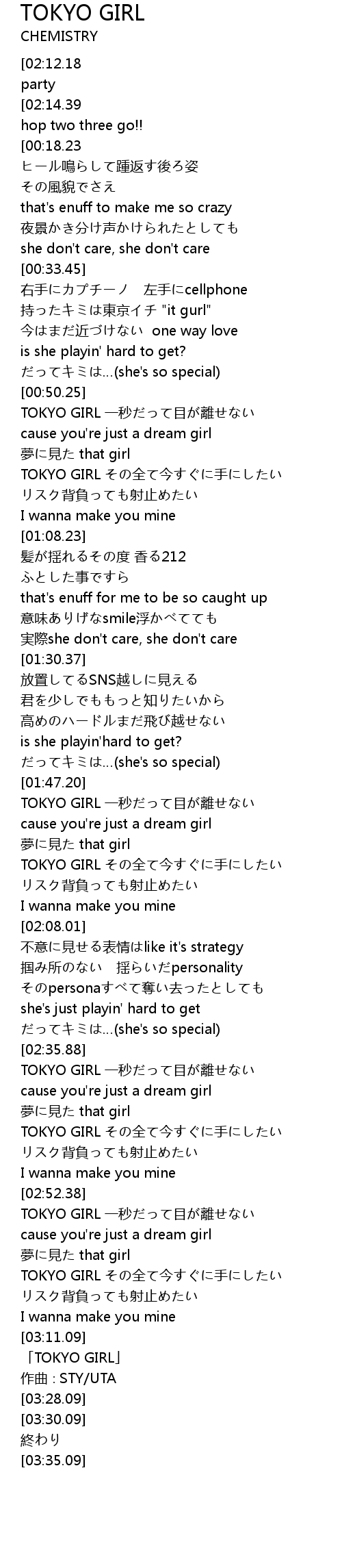 | [03:00.99] | TOKYO GIRL その全て今すぐに手にしたい |