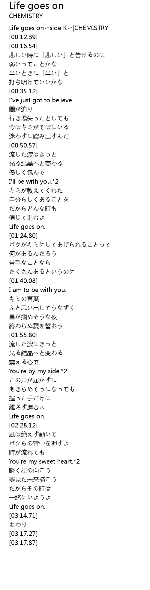 | [00:01.25] | Life goes on〜side K〜|CHEMISTRY |