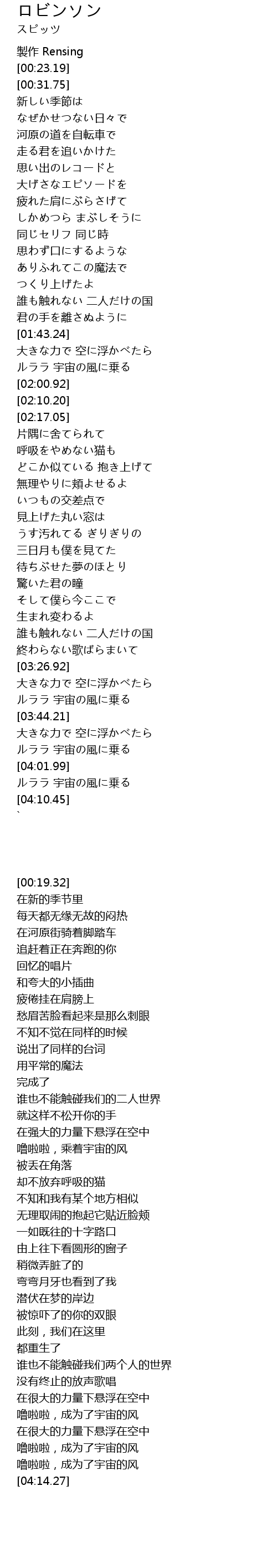 | [04:02.42] | ルララ 宇宙の風に乗る |