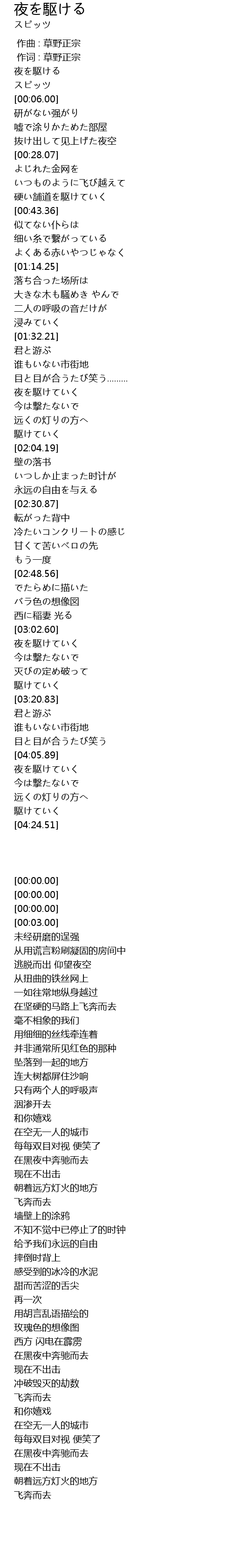 | [00:00.00] | 夜を駆ける |
