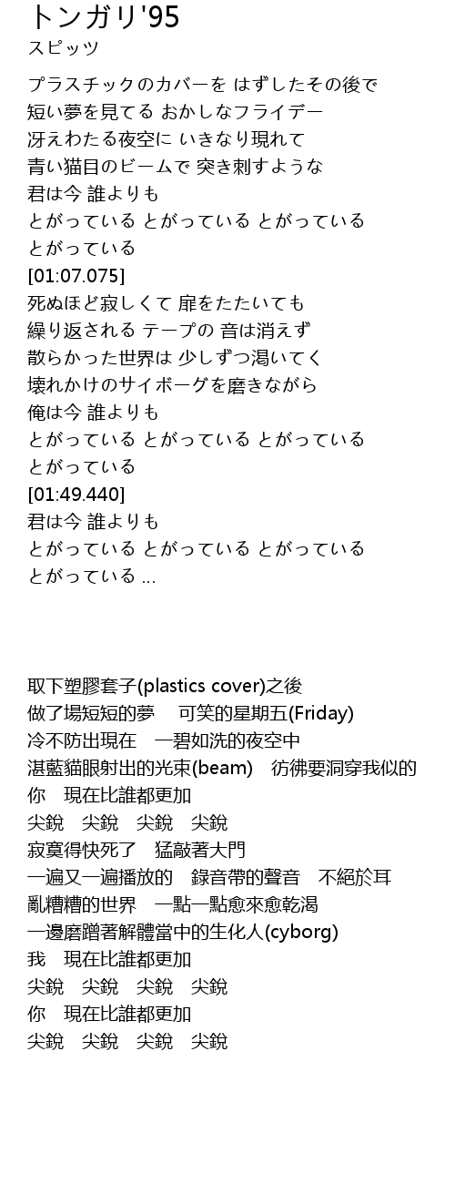 | [02:31.207] | とがっている とがっている とがっている とがっている … |