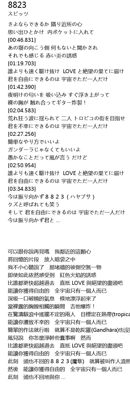 | [03:24.650] | 君を自由にできるのは 宇宙でただ一人だけ |