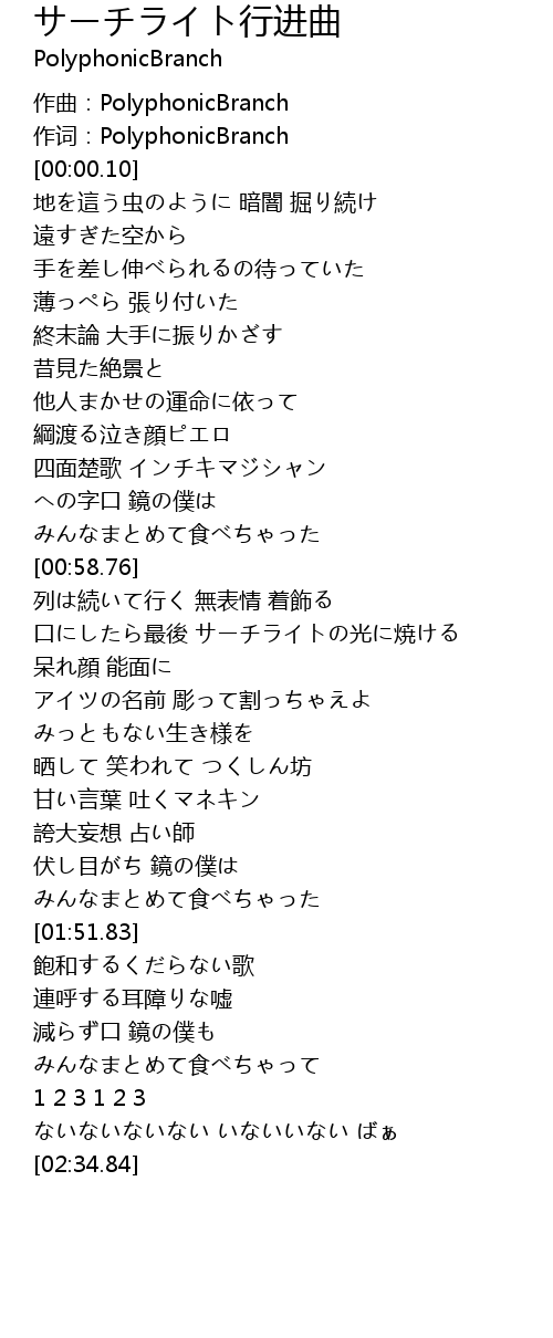 | [00:00.05] | 作词:PolyphonicBranch |