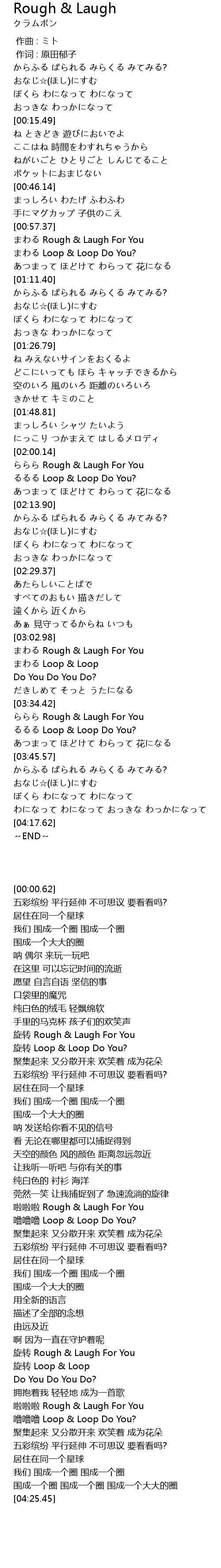 | [02:03.82] | ららら Rough & Laugh For You |