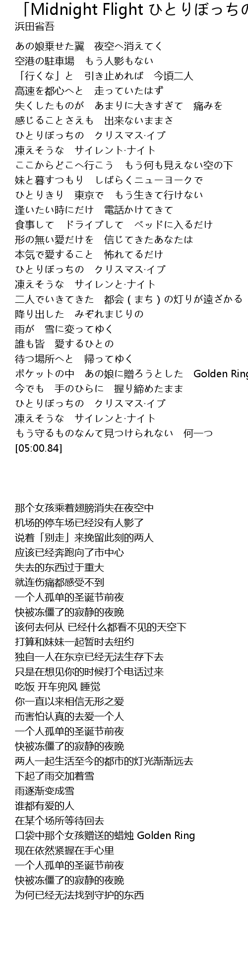 | [04:17.90] | ポケットの中 あの娘に贈ろうとした Golden Ring |
