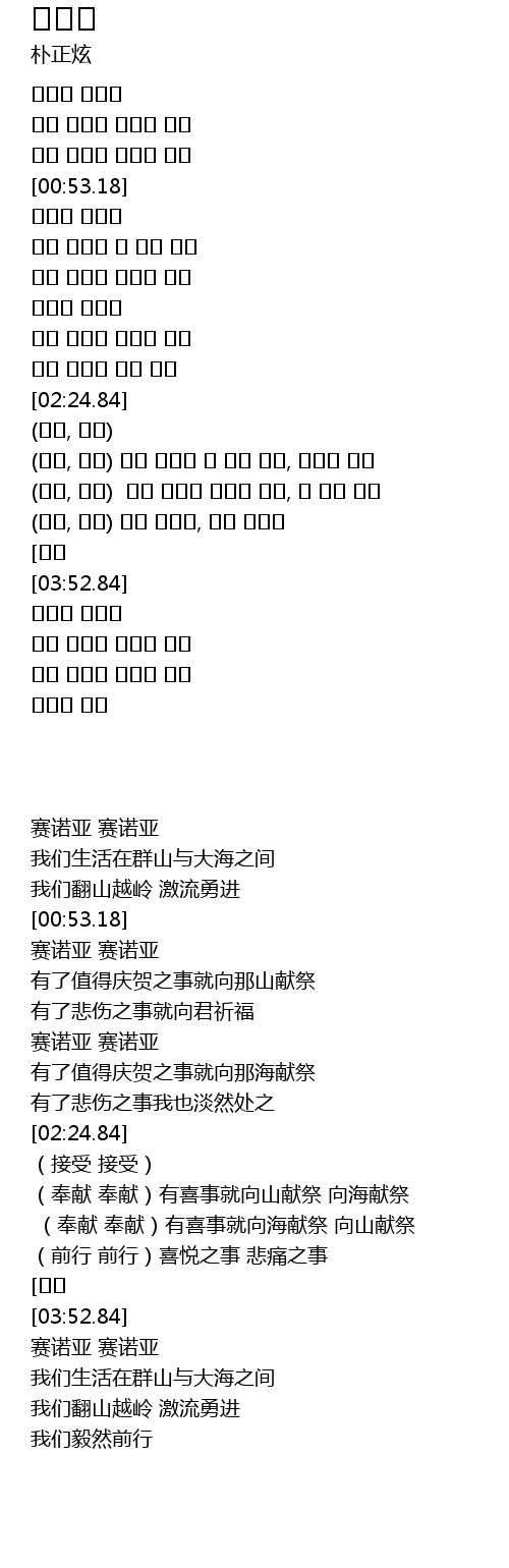 | [03:12.25] | (주네, 주네) 기쁜 일이면 바다에 주고, 저 산에 주고 |