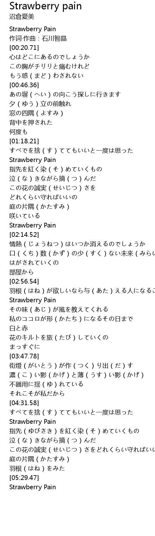 | [05:01.13] | 泣(な)きながら摘(つ)んだ |