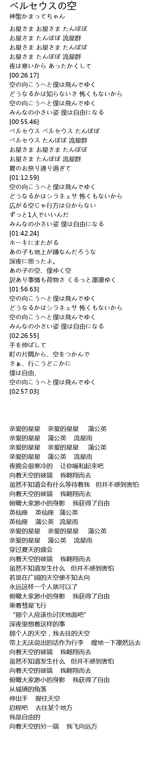 | [00:16.81] | お星さま たんぽぽ 流星群 |