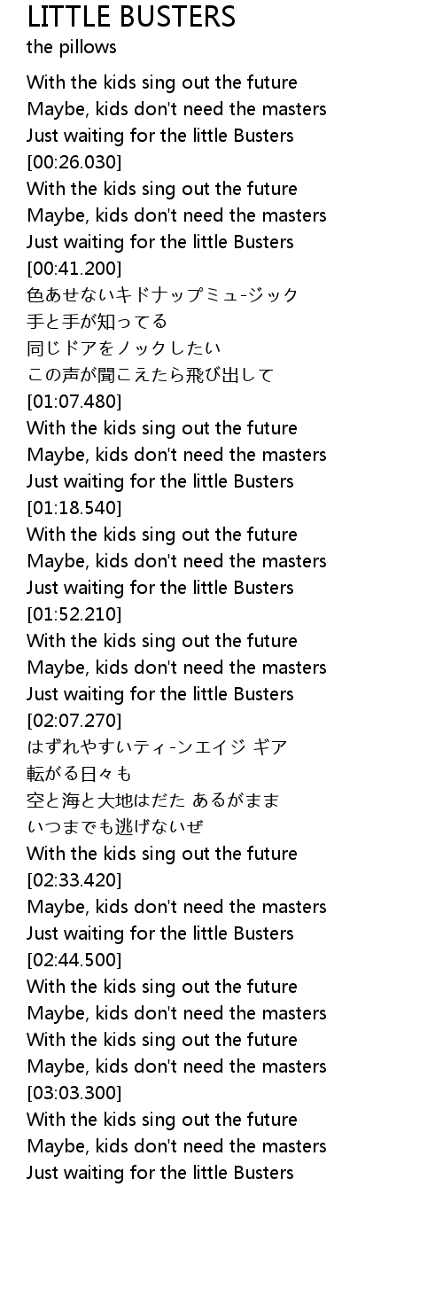 | [03:11.000] | Just waiting for the little Busters |